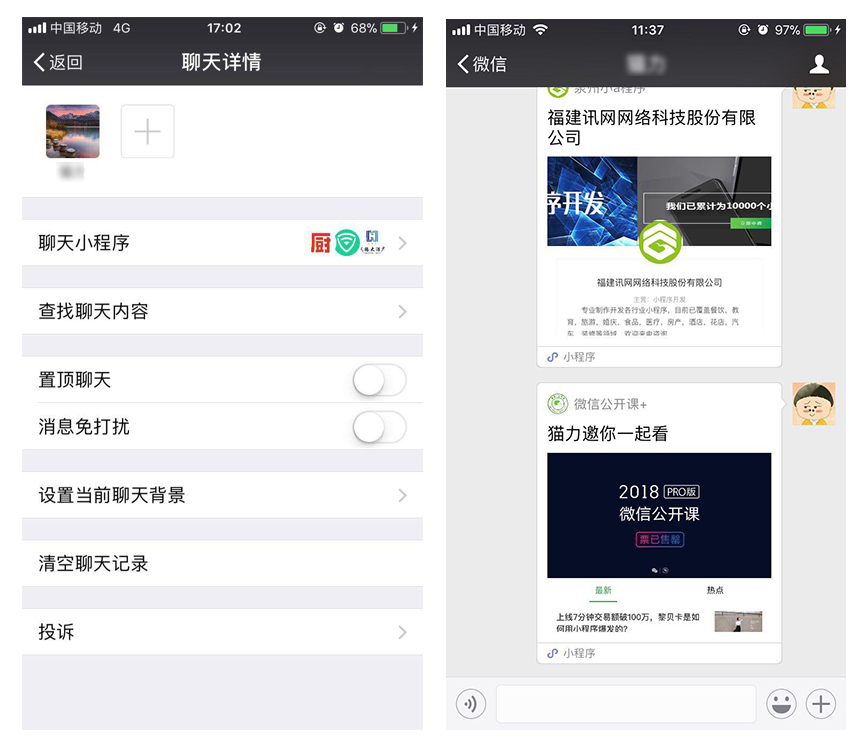 小程序卡片可以分享到好友及群聊之中,并且在聊天詳情中可找到發(fā)過的小程序,你與好友、群成員聊天里收到、發(fā)出的小程序都可直接進入。