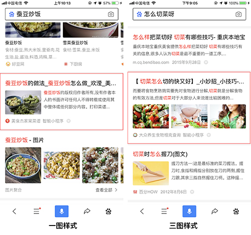搜索結(jié)果中展現(xiàn)圖片,一方面可以讓搜索用戶有更好的瀏覽體驗(yàn),同時(shí)也可以為搜索結(jié)果帶來更多點(diǎn)擊?,F(xiàn)在面對智能小程序推出搜索結(jié)果出圖權(quán)益,允許開發(fā)者推薦智能小程序在搜索結(jié)果中展示的圖片。搜索結(jié)果出圖的圖片樣式共分兩種,一圖樣式和三圖樣式,現(xiàn)階段一圖樣式已全量開放,三圖樣式內(nèi)測逐漸開放中。