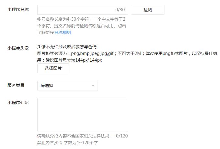 根據(jù)后臺點擊提示進入頁面,填寫小程序名稱、小程序頭條、服務類目、小程序介紹,即可創(chuàng)建微信小店小程序。