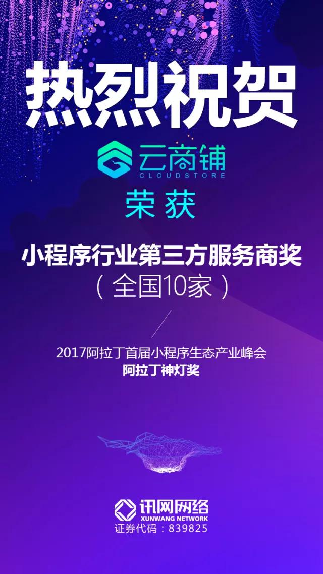 訊網(wǎng)網(wǎng)絡旗下的服務品牌---云商鋪榮獲“小程序行業(yè)第三方服務商獎(全國10家)”。