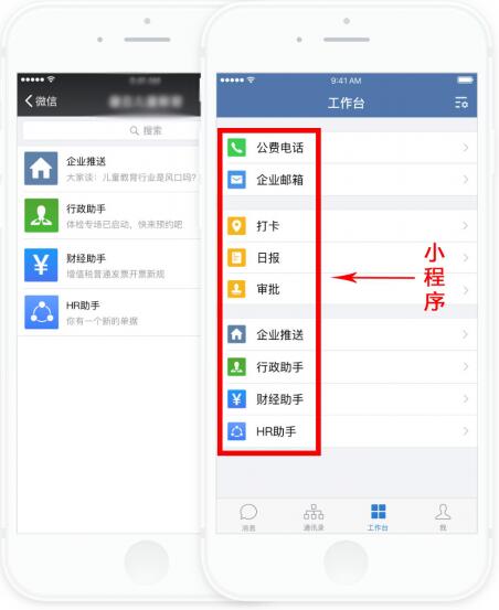 在企業(yè)微信中,微信插件是一種無(wú)需下載的APP,它能夠?qū)⑵髽I(yè)微信與微信相連通,同時(shí)也能鏈接企業(yè)上下游的合作伙伴。而這一切恰恰與小程序相吻合。